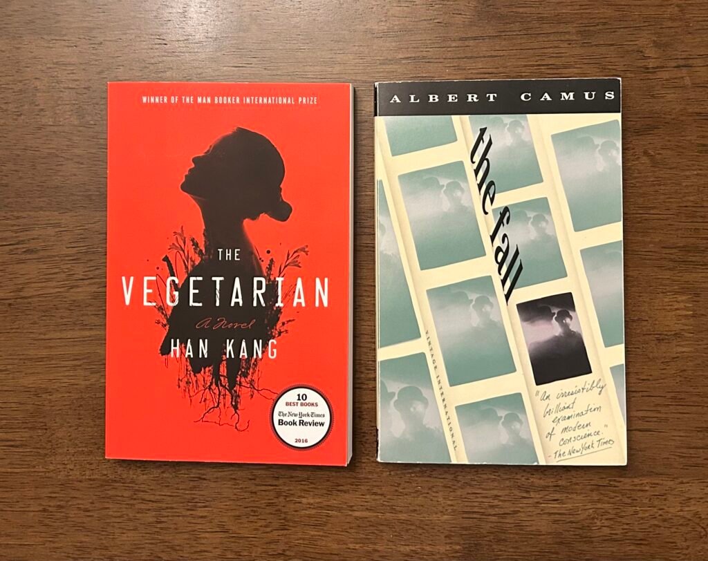 “The Vegetarian” details the unraveling of a family when a daughter has nightmares and becomes a vegetarian. The novel consists of three parts consisting of 1) Yeong-Hye becoming a vegetarian and her marriage unraveling, 2)Yeong-Hye’s brother-in-law making an art film surrounding her, and his marriage unraveling, 3) Yeong-Hye and her sister at a psychiatric hospital while Yeong-Hye is being treated for anorexia and schizophrenia. This novel contains (in often graphic and unsettling detail) people reaching their breaking point when trying to manage societal expectations for family life and career success. The male characters all want control as they deal with intense pressure in the workplace. The women want to escape the expectations of managing a household often while also working. The lines between sanity and insanity become blurred as the conforming to social pressures requires unnatural exertion with the only benefit being an escape from scrutiny and (often) violence.
